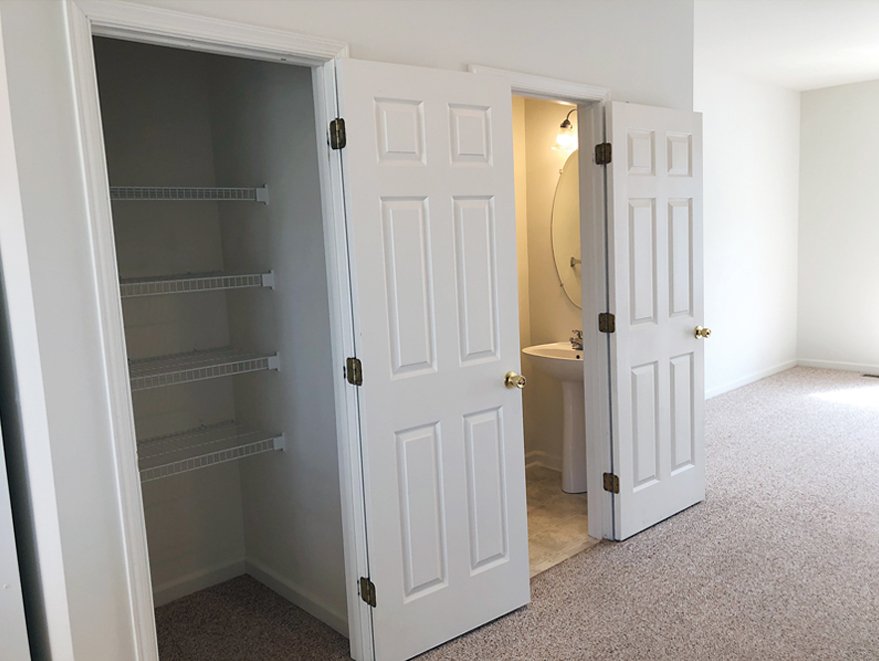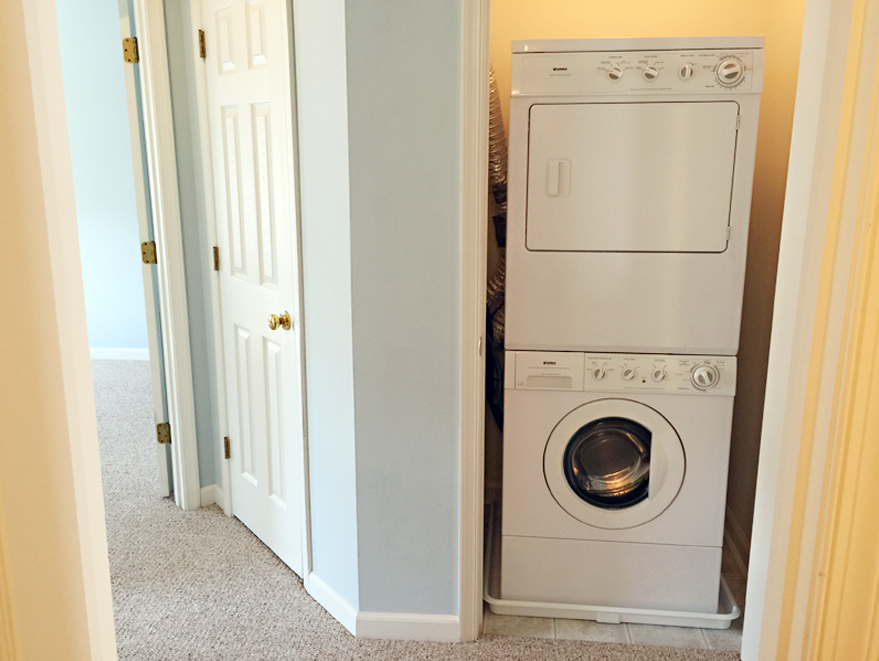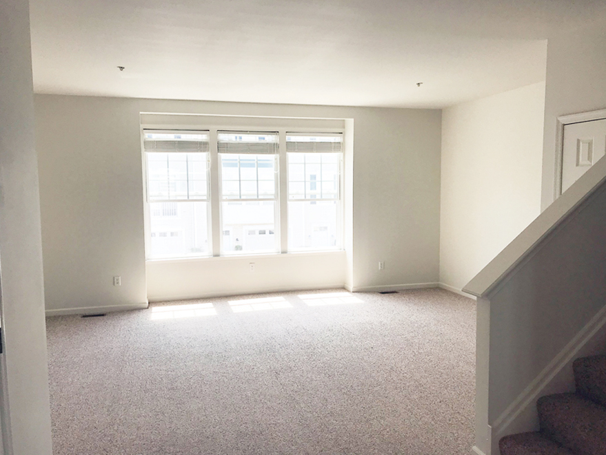 ALSO FEATURES: a spacious living room with 9-foot ceilings and a bay window bump-out. Eat-in kitchen with center island, pantry closet, dishwasher and disposal. Master bedroom suite with his-and-her closets and master bathroom with separate shower and soaking tub. All bedrooms are wired for cable TV. Third-level washer/dryer is convenient to all bedrooms. Unfurnished.